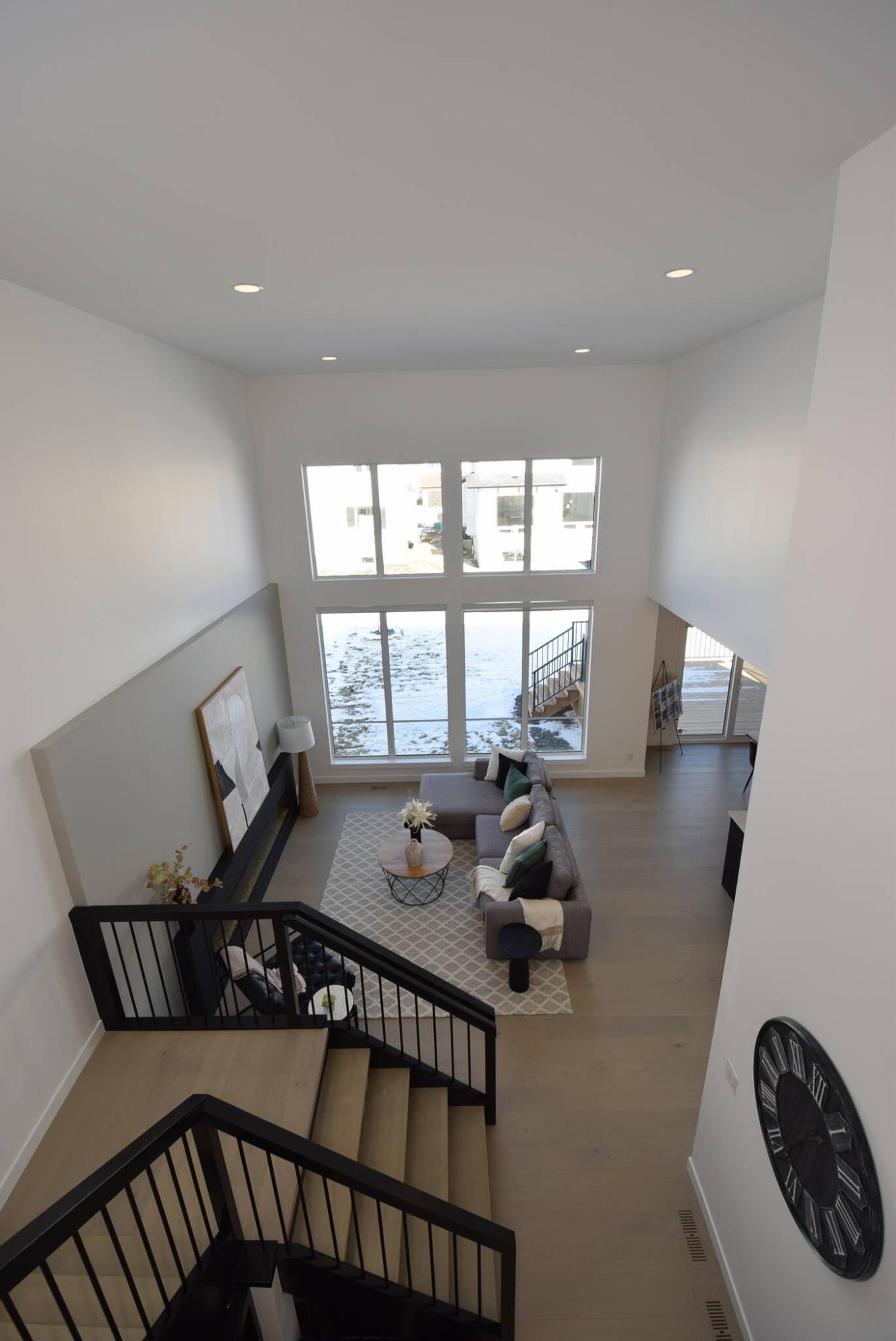 It’s a pleasure to look down on the great room of this stunning Bison Run two-storey.