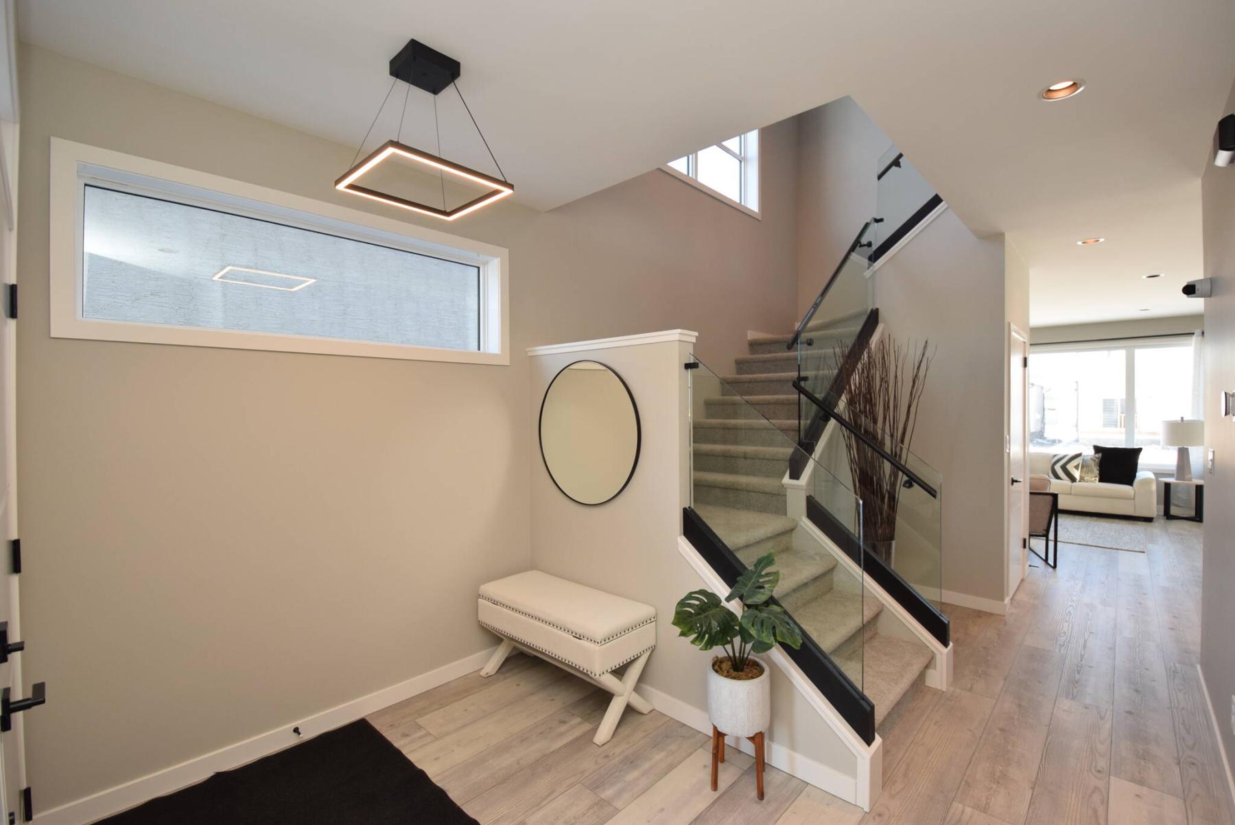 When you step into the foyer of 18 Firestone Drive — Ventura Custom Homes’ king-sized show home in Prairie Pointe – you immediately feel the urge to head upstairs.
