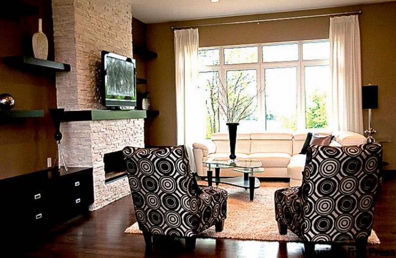 The result of his thoughtful design is a great-room area where the kitchen and dinette comprise one sector while a formal (front-oriented) dining room comprises another, with tons of space left over for a family room steeped in understated elegance. Features like extra-wide, espresso-maple trim and baseboards, clean, uncluttered lines (no bulkheads) and etched glass on the foyer closet door add a lot of class.