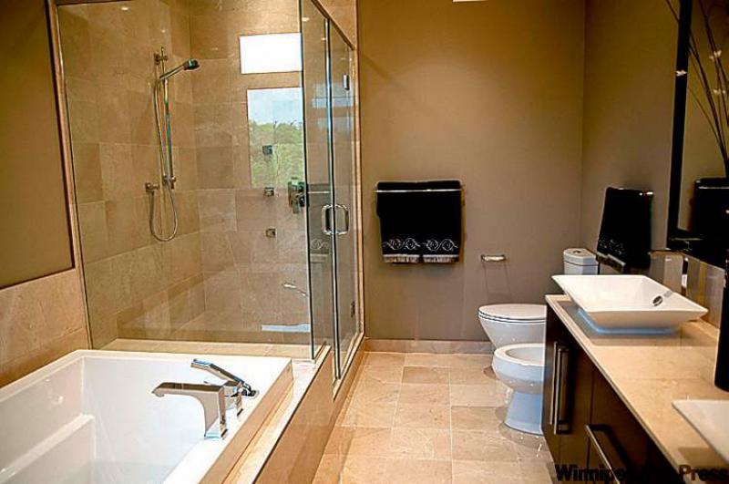 "The first thing you see in the morning is the river view -- it's wonderful to wake up to," he said. "The bedroom is larger than normal, with an ensuite defined by a sliding barn door. Inside, there's an (six-foot) air tub set in beige marble, tempered glass shower with two body sprays (and rain shower head) and espresso vanity with granite counter and raised (Kohler) vessel sinks. Most importantly, it's a totally private space."