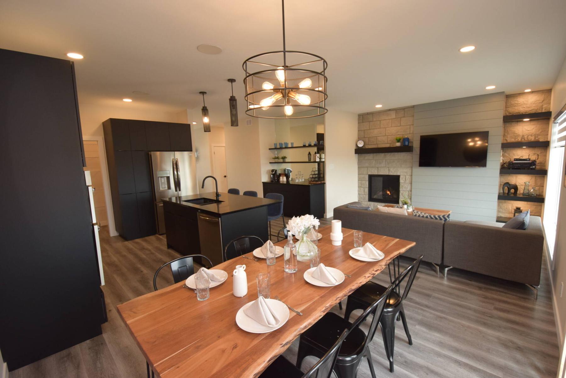 The open concept main living area exudes a natural warmth that’s drawn from a wonderful combination of modern and rustic finishes.