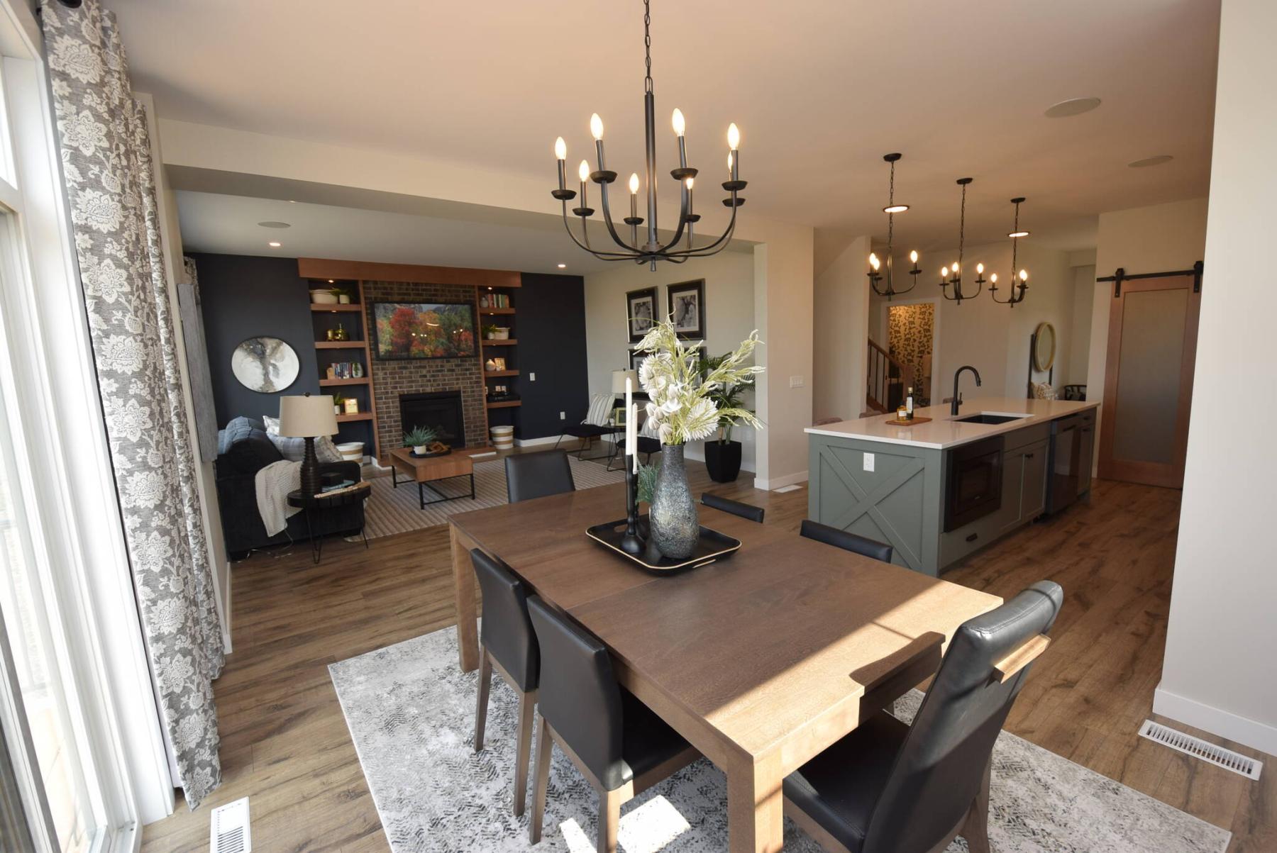 “It’s a design feature that you notice pretty much the instant you enter the main living area,” she says. “The expandable dining area is set next to a sliding patio door with sidelights and a transom window, while the family room is defined by a huge picture window on its rear wall. The patio door leads out to a huge backyard deck.”