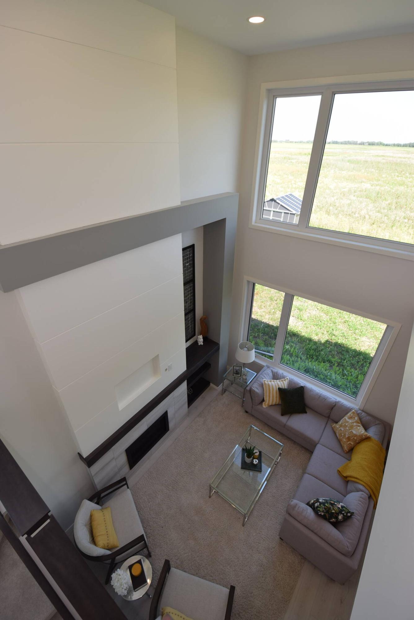“It’s nice and bright with all the glass on the east side of the home. Most of the light enters the home from the amazing great room, which has an 18-foot ceiling that allows for floor-to-ceiling windows that let in tons of daylight. A gas fireplace with tile surround and feature wall that reaches up to the ceiling finish it off perfectly.”