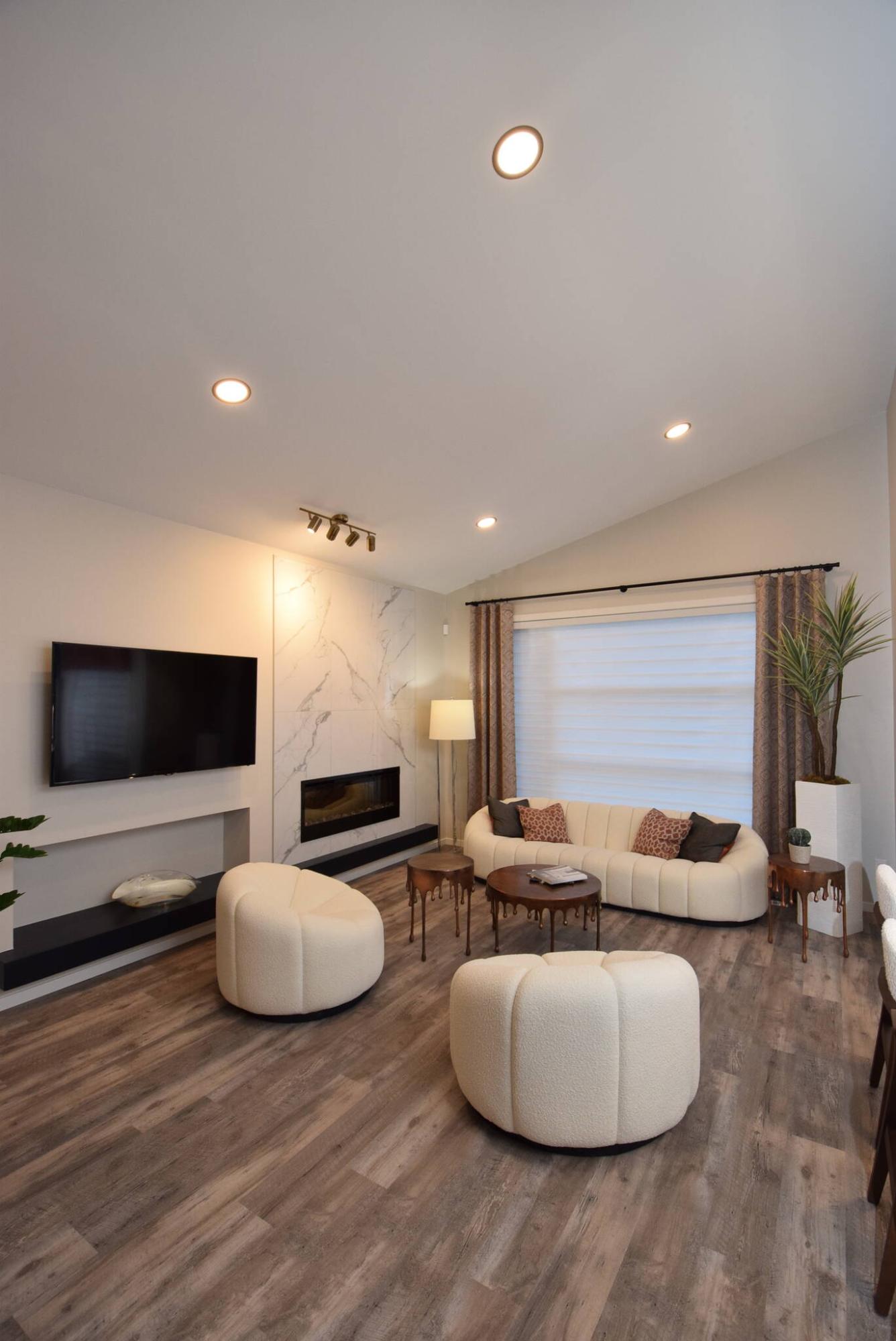 Then, there’s the great room/kitchen area, which features a fabulous fusion of function and fashion.