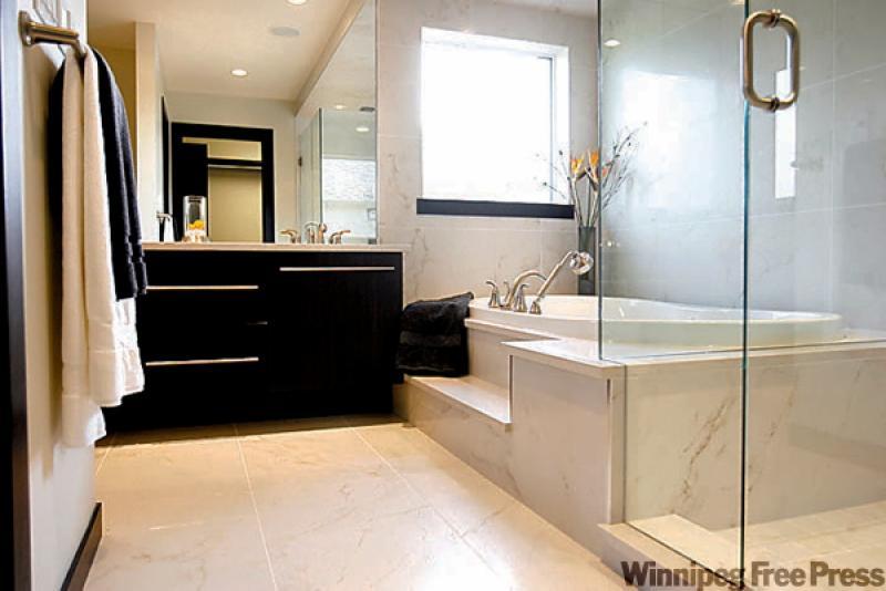 "And that's as it should be," Tony says. "It's set off by itself with a great view. It was positioned specifically to take advantage of the great view out back. "For a touch of luxury, we put (heated) white porcelain tile in the ensuite along with a four-foot tempered-glass shower enclosure with an awesome Kohler body-spray system. We also carried the grey Caesar Stone into it because it looks so great."