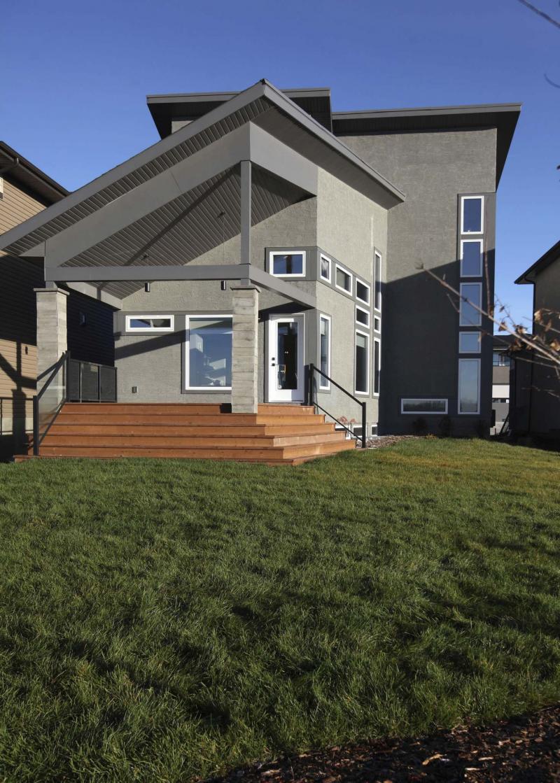 However, the moment you set eyes on 209 Bonaventure Dr. East — a newly minted, 1,868-square-foot, two-storey design — you know something’s afoot. That’s because a trio of angled rooflines (two high up plus the attached garage below) suggests that the home is going to be anything but traditional.