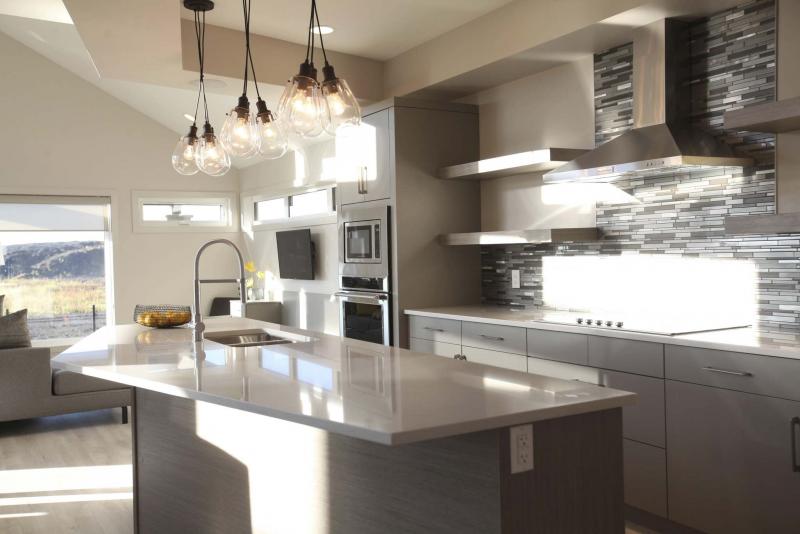 While the home’s design is artistic, Gino’s Homes’ design team didn’t lose sight of the fact its layout needed to be logical so it would meet its occupants’ daily needs in a stylishly efficient manner. Consequently, the great room’s centrepiece is a cool-looking island that scores high marks in both technical merit and style. "Visitors to the home have just loved the dual-angled (12-foot) island. It has space to seat anywhere from six to eight people, and is a perfect spot for guests to sit down and spend time with a drink, chatting with their hosts as they prepare dinner," Ftoma says. "It not only is a huge social piece that adds wow factor, but is a piece that also brings a lot of function to the table, too."