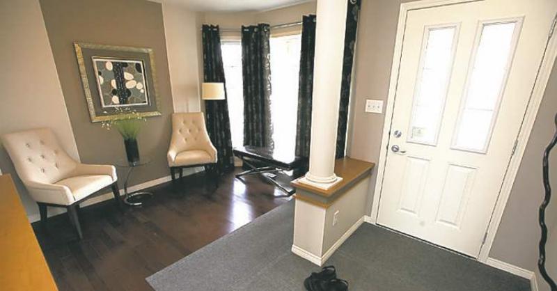 "Take the living room, for example. It's a nice big area that feels even bigger due to the high (17-foot) ceiling. People love that, along with the huge window and gas fireplace (and maple entertainment unit) that features a tiled feature wall that extends all the way to the ceiling. It's a nice design feature that looks good, and functions," said Saltel.