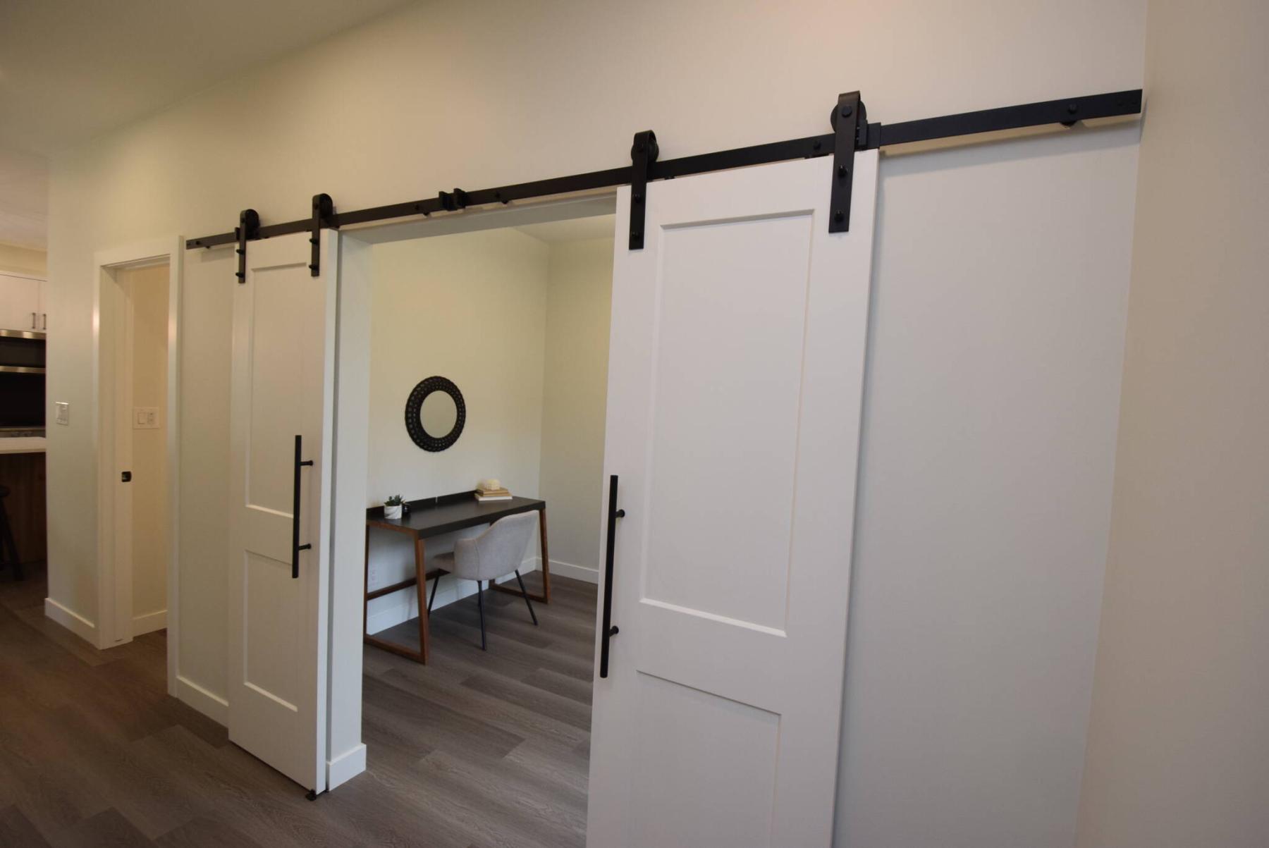 A handy space, the main floor office is next to the front door and can be closed off by stylish barn-style doors.