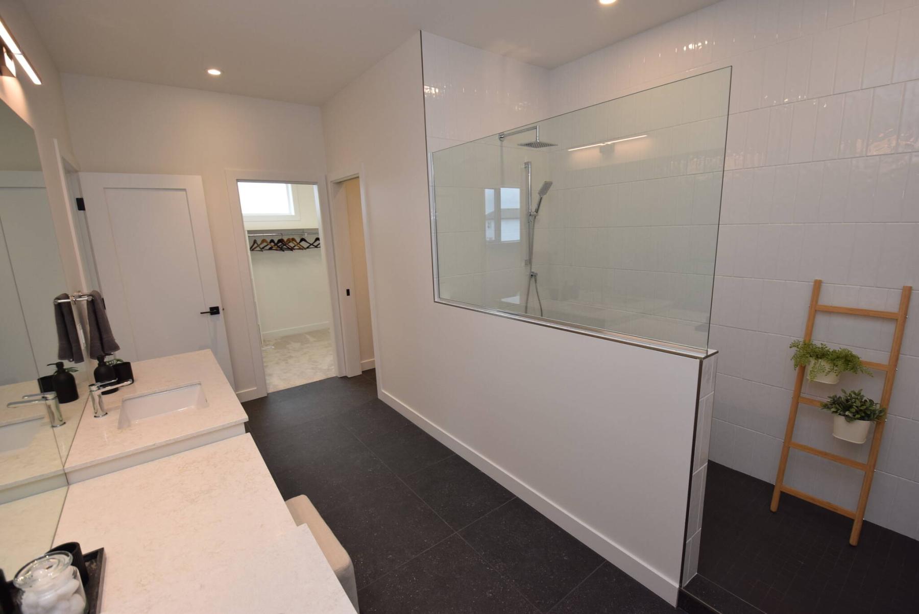 A nine-foot walk-in shower with rainfall feature is the centrepiece of the primary bedroom’s luxurious ensuite.