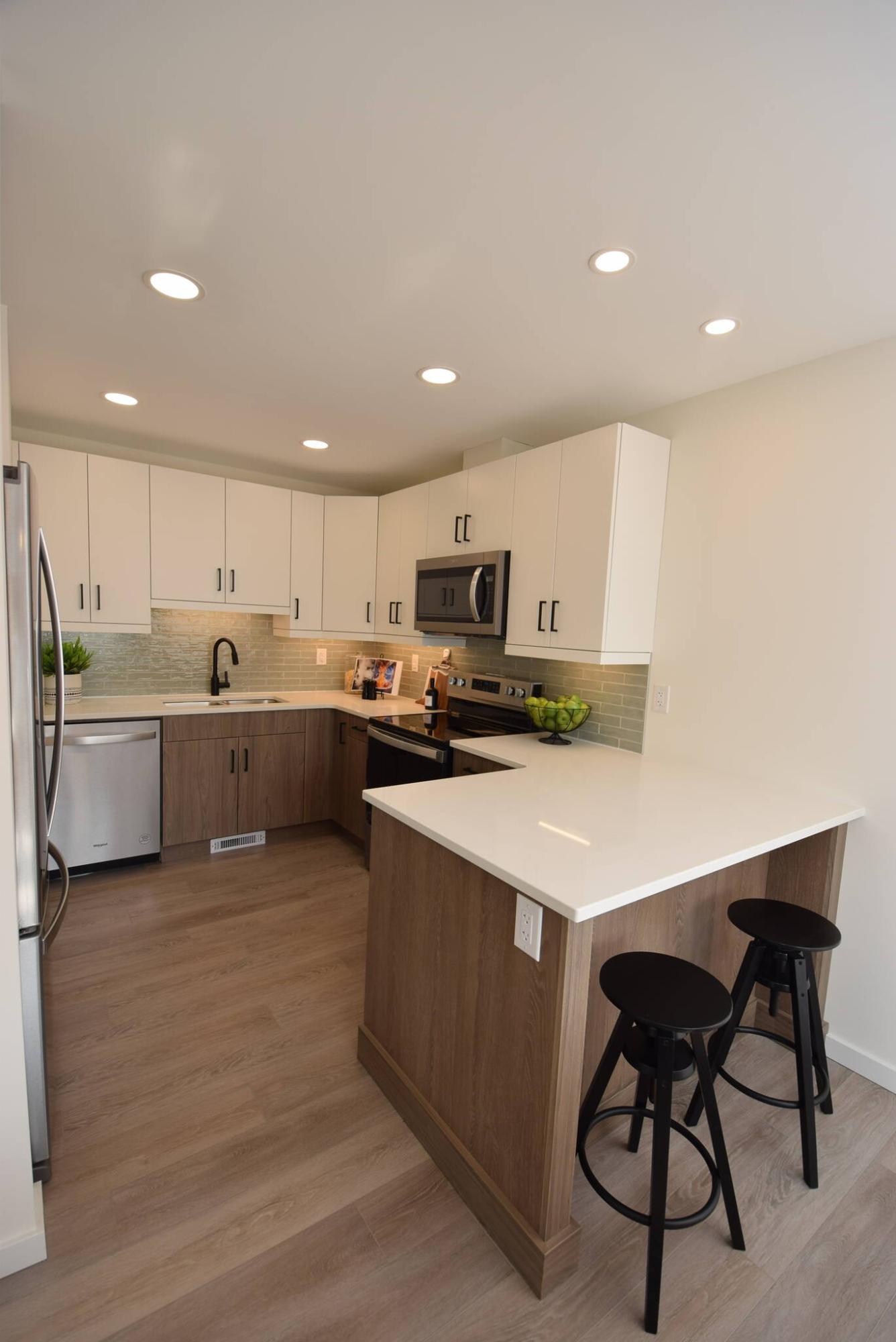 They come standard with warm, durable vinyl plank flooring, quartz countertops, light or dark cabinetry and rich, tiled backsplashes.