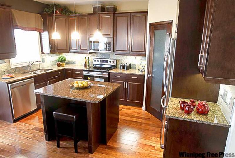 "It's a great area -- the finishes (cappuccino maple cabinets, granite countertops, slate backsplash and wide plank walnut floors) make for a cosy feel, and a slate gas fireplace (with floor to ceiling surround) provides visual impact."