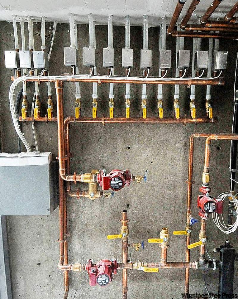 The radiant-heat floors are warmed by the solar panels on the roof. Toilets are flushed with rainwater. Windows are triple-glazed, concrete floors reflect light, and the arrangement of the homes on the property allows for each home to share the natural light emanating from a skywell.