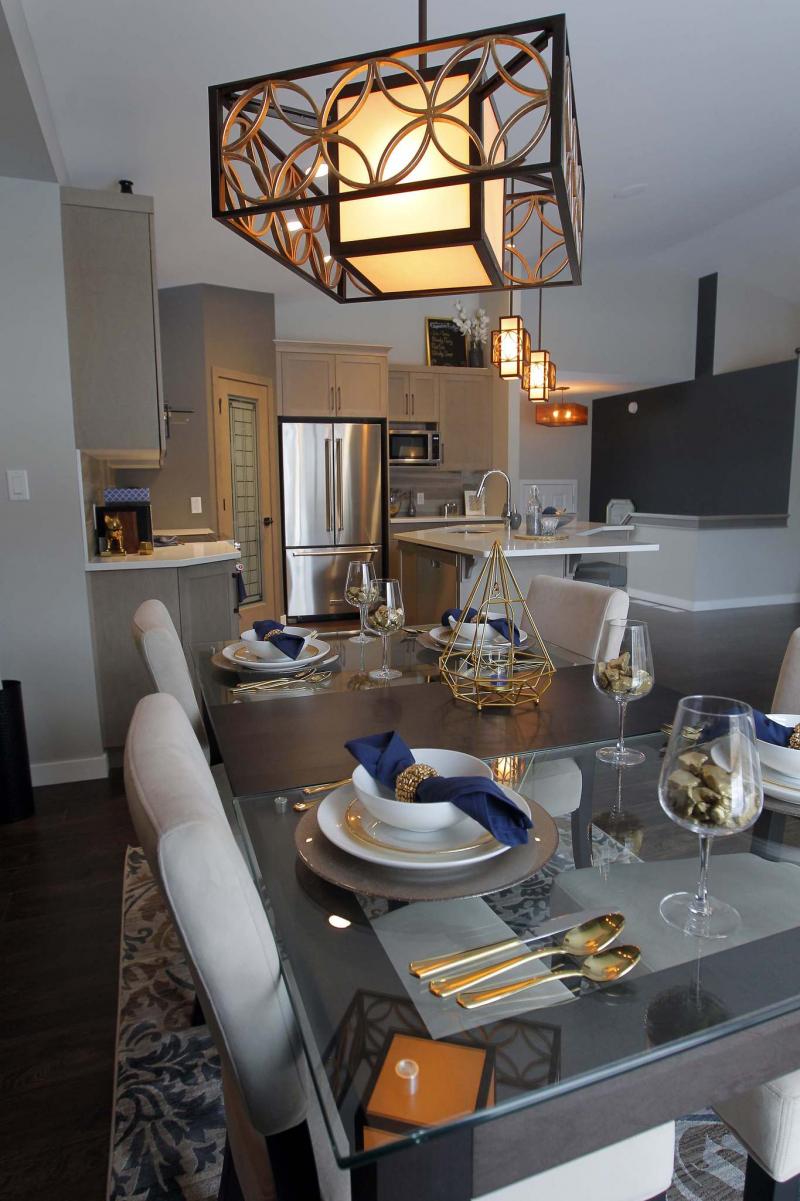 "The finishing materials that Avanti’s designers used are clean and rich," he says. "A great example is the (taupe) tile feature wall that surrounds the (linear) gas fireplace in the family room and the same tile backsplash in the kitchen — they give both areas a clean, yet luxurious feel. The flooring (hand-scraped, wide-plank laminates) not only adds texture and warmth, but it’s also very easy to maintain."