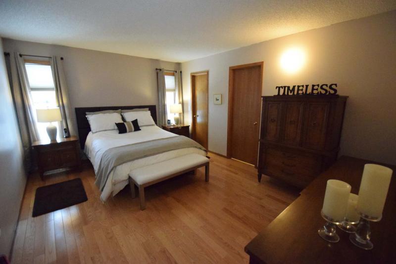 Wander over to the house’s bedroom wing and there’s no letdown in the home’s high level of function. There’s a good sized main-floor laundry room, a spacious four-piece bath with portobello maple vanity and deep soaker tub, and three big bedrooms. Both secondary bedrooms are oversized with huge windows, vaulted ceilings and big double closets.