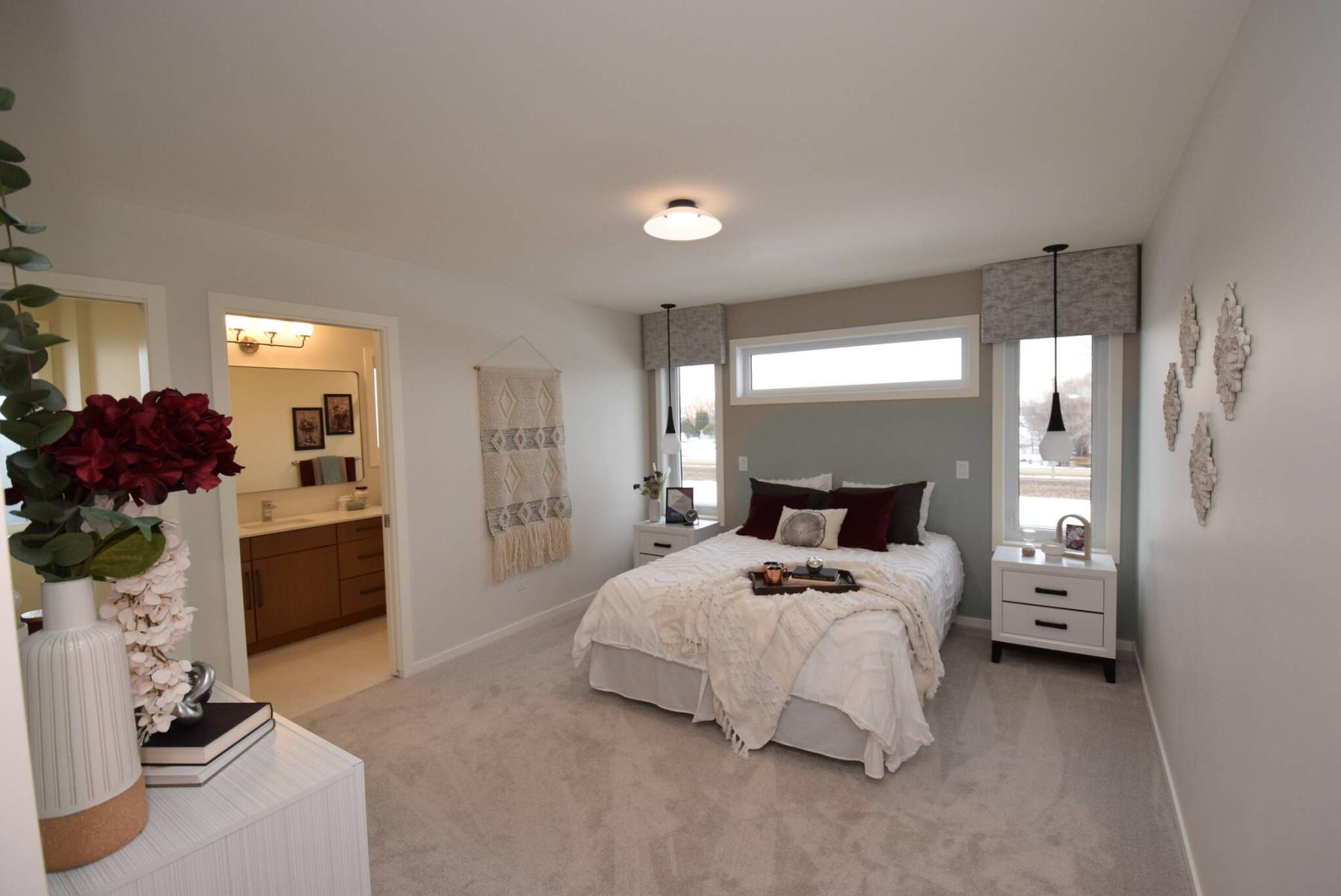 “The bedroom is surprisingly large, given the home’s square footage,” notes Dudeck. “It faces south, so lots of natural light floods inside. A huge walk-in closet provides plenty of storage space for clothing and shoes, while a deluxe ensuite with a beige tile floor and five-foot walk-in shower with two-tone tile surround adds a touch of class.”