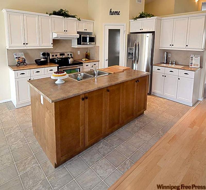 "As functional as the area is, we also built in plenty of style," Frederiksen said. "The island's base is maple with a honey-coloured stain to provide some contrast to the white cabinets. The laminate countertops not only look great, but are affordable. The linoleum floor was chosen not only because it has a rich look, but because it's durable and easy to maintain, something families will appreciate."