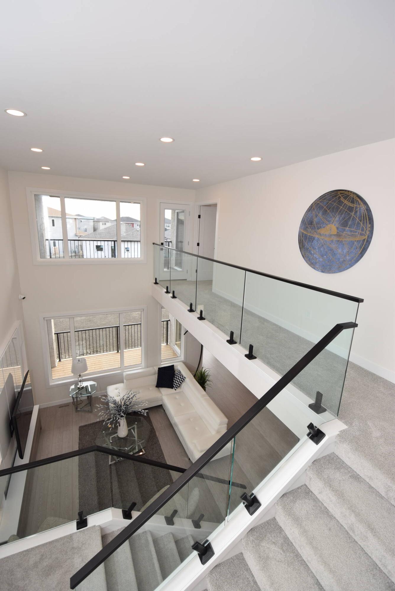 Head upstairs to the home’s second floor via an extra-wide staircase bordered by tempered glass inserts (that are defined by modern black trim), and you find yourself surrounded by light, and space.