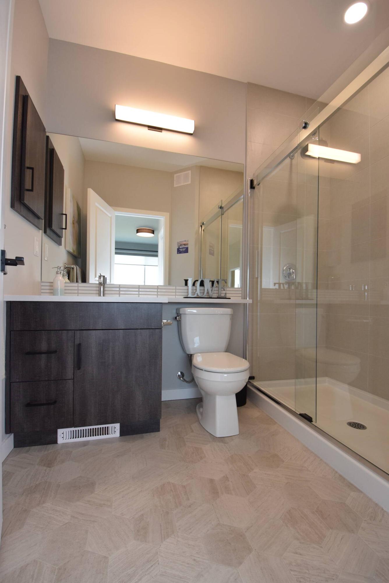 “You couldn’t ask for a more private space,” he says. “The colour scheme gives it a wonderful, calm feel, and there’s a big walk-in closet behind a bi-fold door on the right side of the hallway that leads to the ensuite. The ensuite comes with a five-foot custom shower with tile surround, vinyl floor with a beautiful hexagonal pattern and an espresso vanity with quartz countertop.”