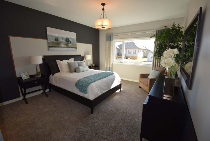 While function, fashion and natural light are the hallmark of the great room, a split floor plan at the front of the home accentuates privacy. To the left of the wide foyer is a hallway that leads to the master suite and a laundry/mudroom; to the right is another short hallway that leads to two bedrooms and a four-piece bath. "The idea behind this design was to provide separation, whether you’re empty nesters who are entertaining out-of-town guests, or are a family with teenagers or young kids. Either way, the parents have their own private master suite plus a main-floor laundry, while guests, teens or kids can have their own private space — and bathroom — over on the other side. The room at the front of the home (with huge window) could be a den, or bedroom."