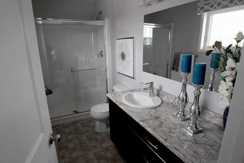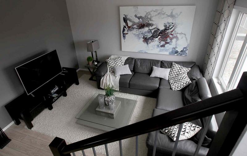 In show home trim, The Northwood comes in priced at a reasonable $375,900. Like most show homes, it comes well-stocked with upgrades, such as wide-plank laminate flooring, maple capping and handrails, a maple pantry door and more.