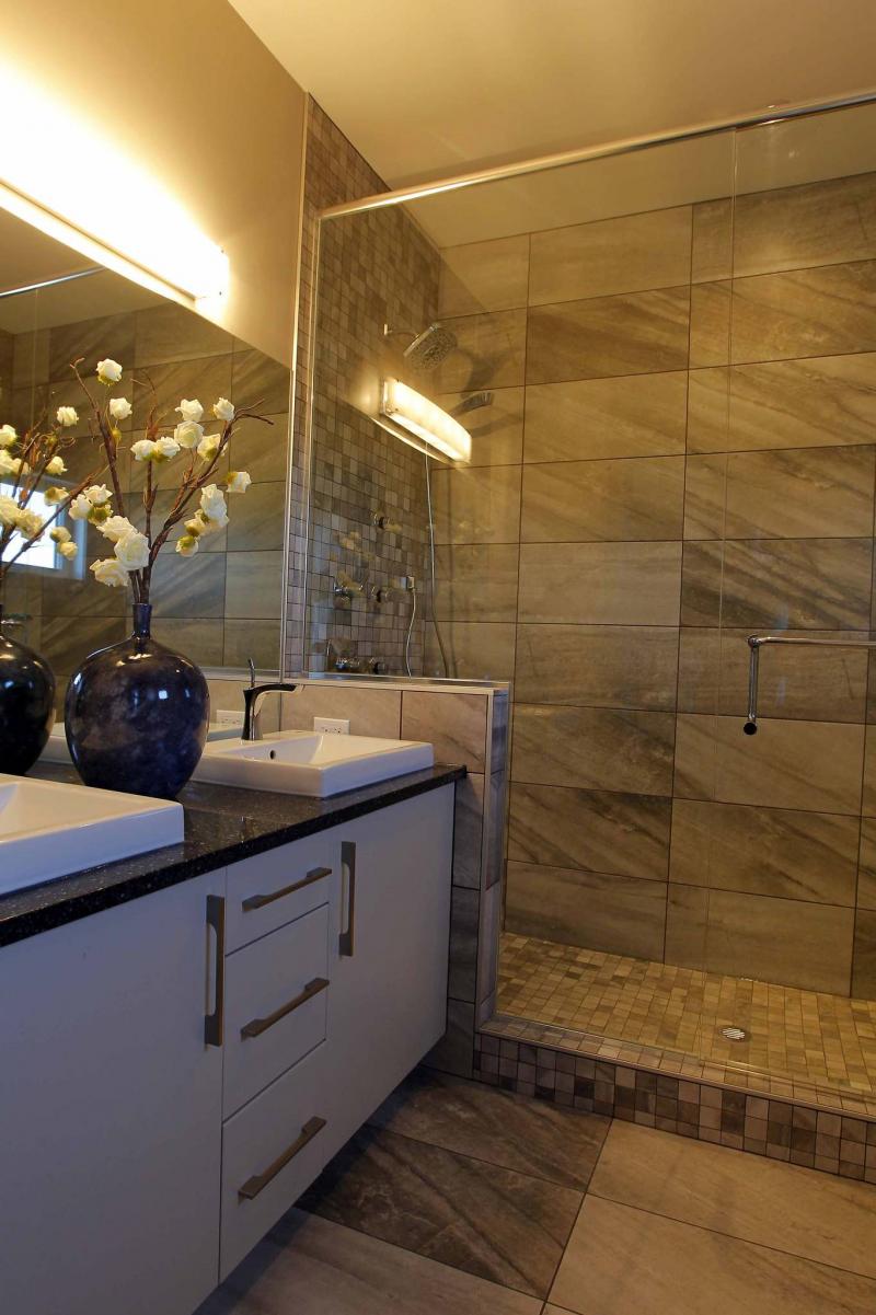 Fittingly, the wing is completed by the master suite, which is set away at the end, all by its lonesome. As it should be, it’s a retreat that offers a perfect blend of privacy and luxury. "Its ensuite is really quite something," said Ediger. "It’s a luxurious space that features an eight-foot custom glass/tile shower with three body sprays, rain shower head and hand-held wand. There’s a floating (light taupe) maple vanity with dual (raised rectangular ceramic) sinks and a gorgeous (light/dark) taupe tile floor. The walk-in closet is a good size, and the bedroom is just the right size."