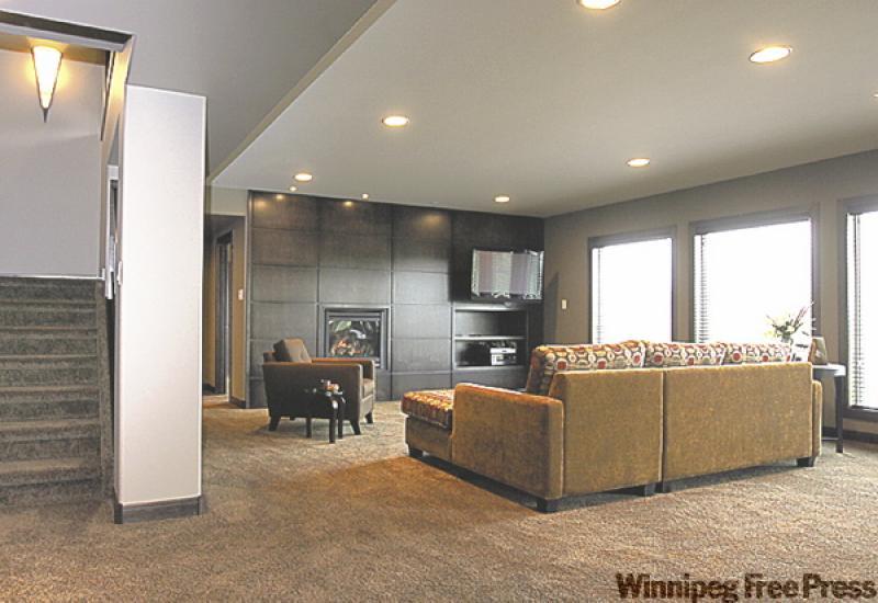 "Space is again the theme down here," Haines explains. "There's all kinds of it in the main area, where you have a media area (on full dark maple wall with gas fireplace) games area and wet bar -- with lots more room to do with what you please."