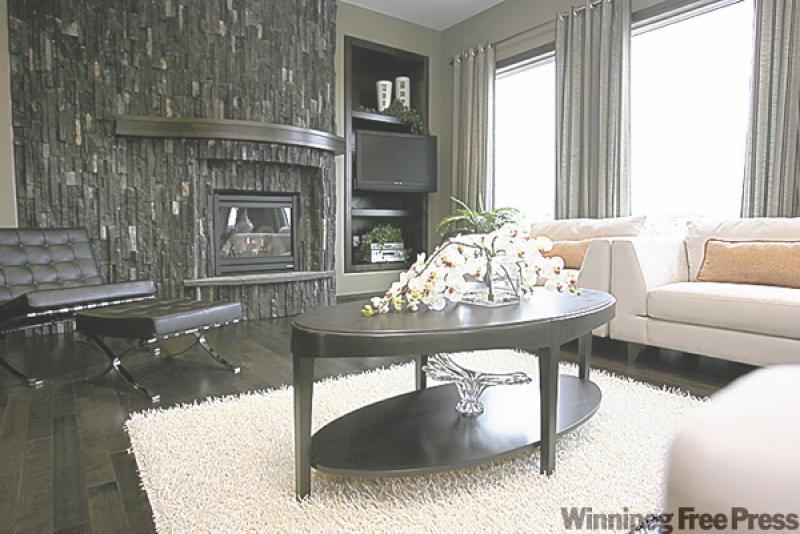 "That's why this home has been such a big seller for us from the first day it opened -- people like the fact that the main floor is so wide open - and they love features like the fireplace, which is set in vertical cultured stone (rather than horizontal)," he says. "They also enjoy touches like the storage display area (with wine rack) built in beside the stairwell to give the area extra functionality."