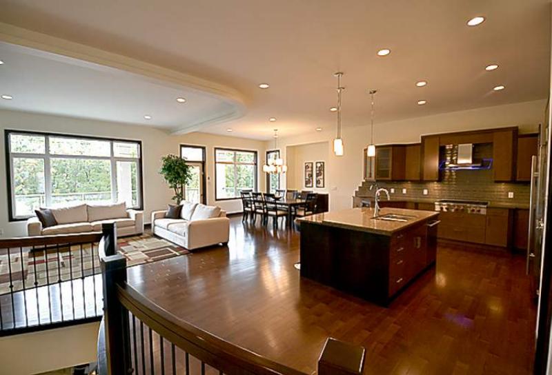 "First, we put in 10-foot ceilings throughout the main floor to create a real feeling of volume. Second, we went with an open-concept design in the great room. Third and finally, we installed as much glass as we could on the home's back wall in the main living area (living room, dining room, kitchen) and in the master suite."
