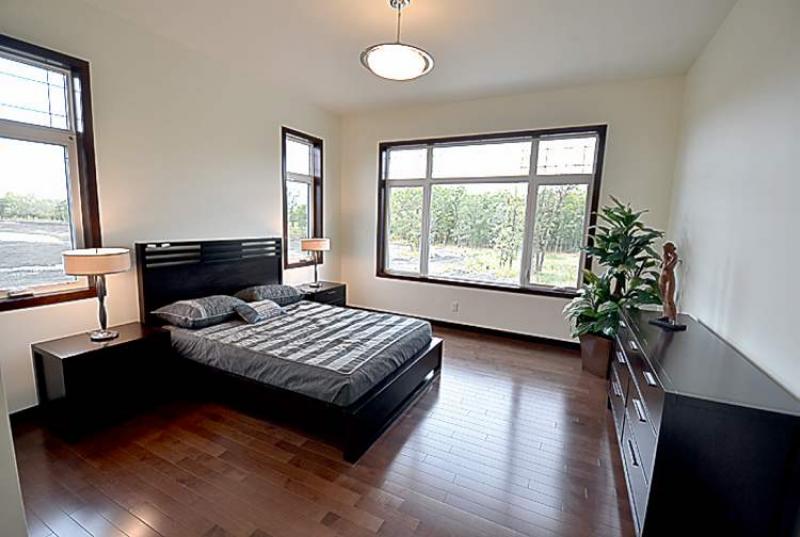 "It's makes you feel like you're the only person on the planet when you're in it. The bedroom features a 180-degree view of the parkland out back. There's also a spa-inspired ensuite with air jet tub, five-foot tempered glass shower with porcelain tile surround and river rock accents, and a heated tile floor and walk-in closet with curved wall custom glass art piano windows."