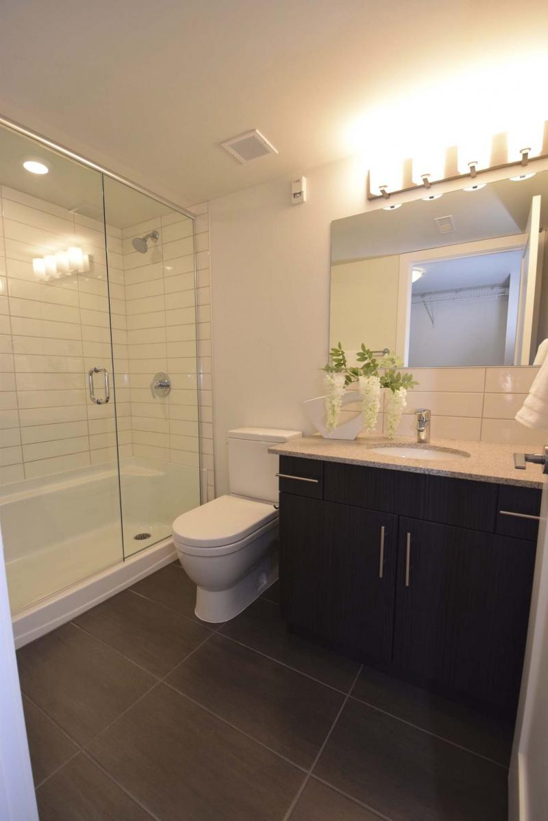 "It comes with a tile floor, thermofoil vanity with granite countertop and low-step-over shower with tile surround and extra-thick tempered glass doors. The finishing materials are not only gorgeous, but very high-quality."