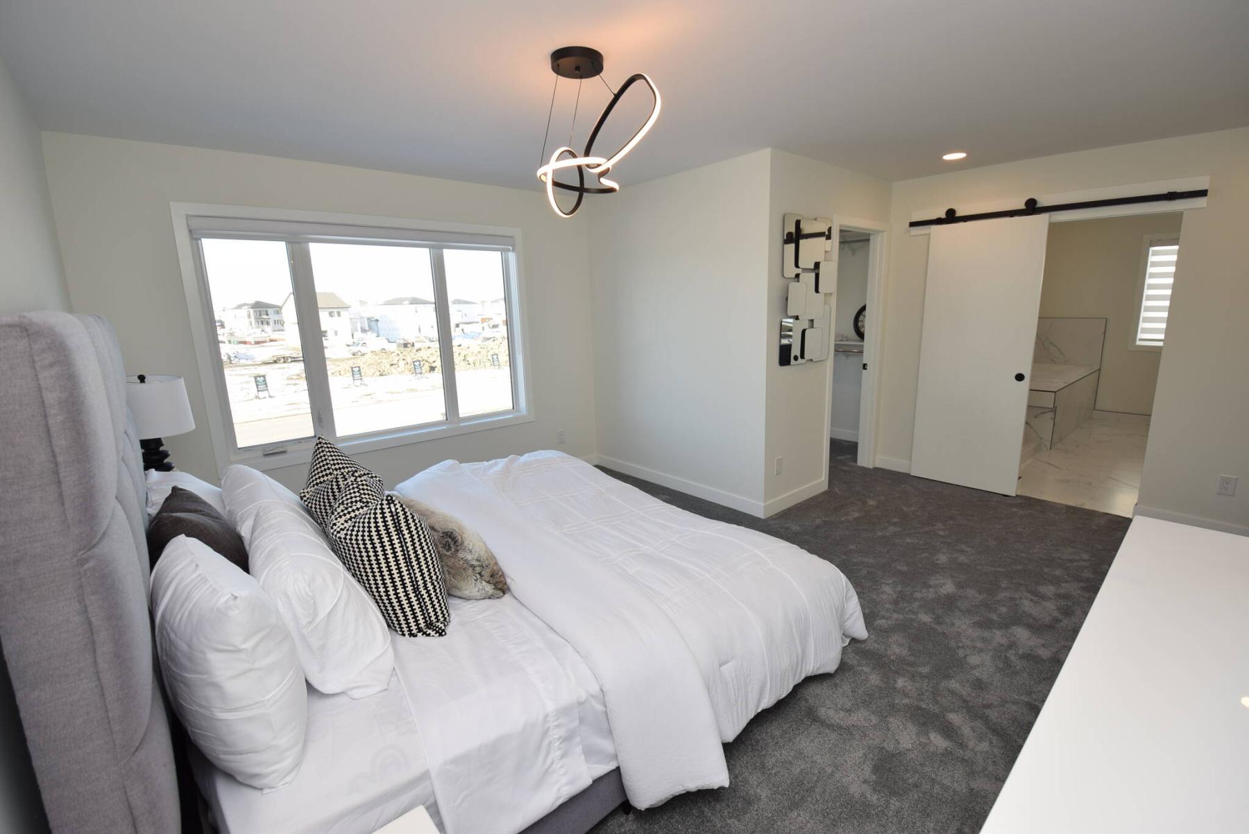 “It really is a showstopper. The bedroom is huge, with a large window on its rear wall that lets in tons of natural light. Then, there’s the spacious walk-in closet, which was placed between the bedroom and ensuite to create a nice bit of separation. The ensuite can be closed off by a barn-style door with contrasting black hardware.”