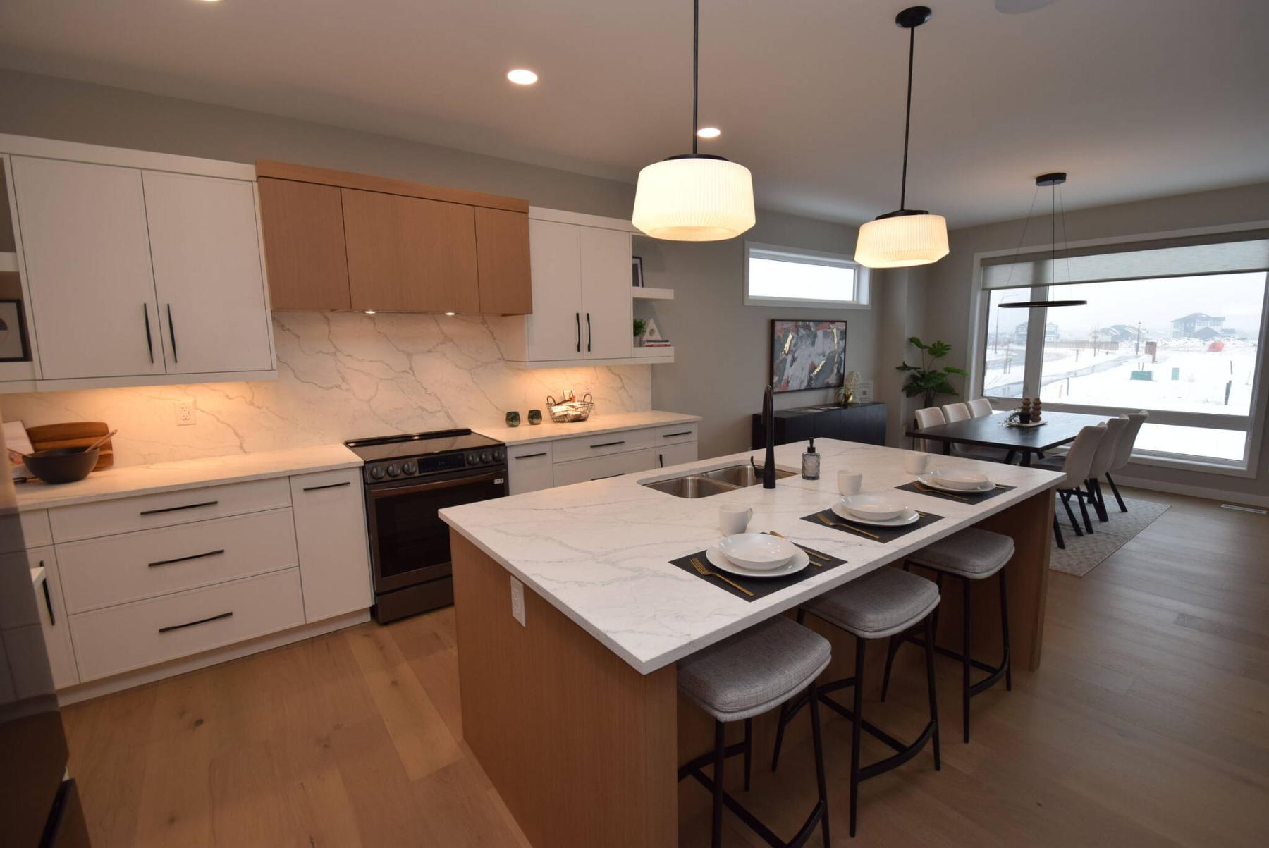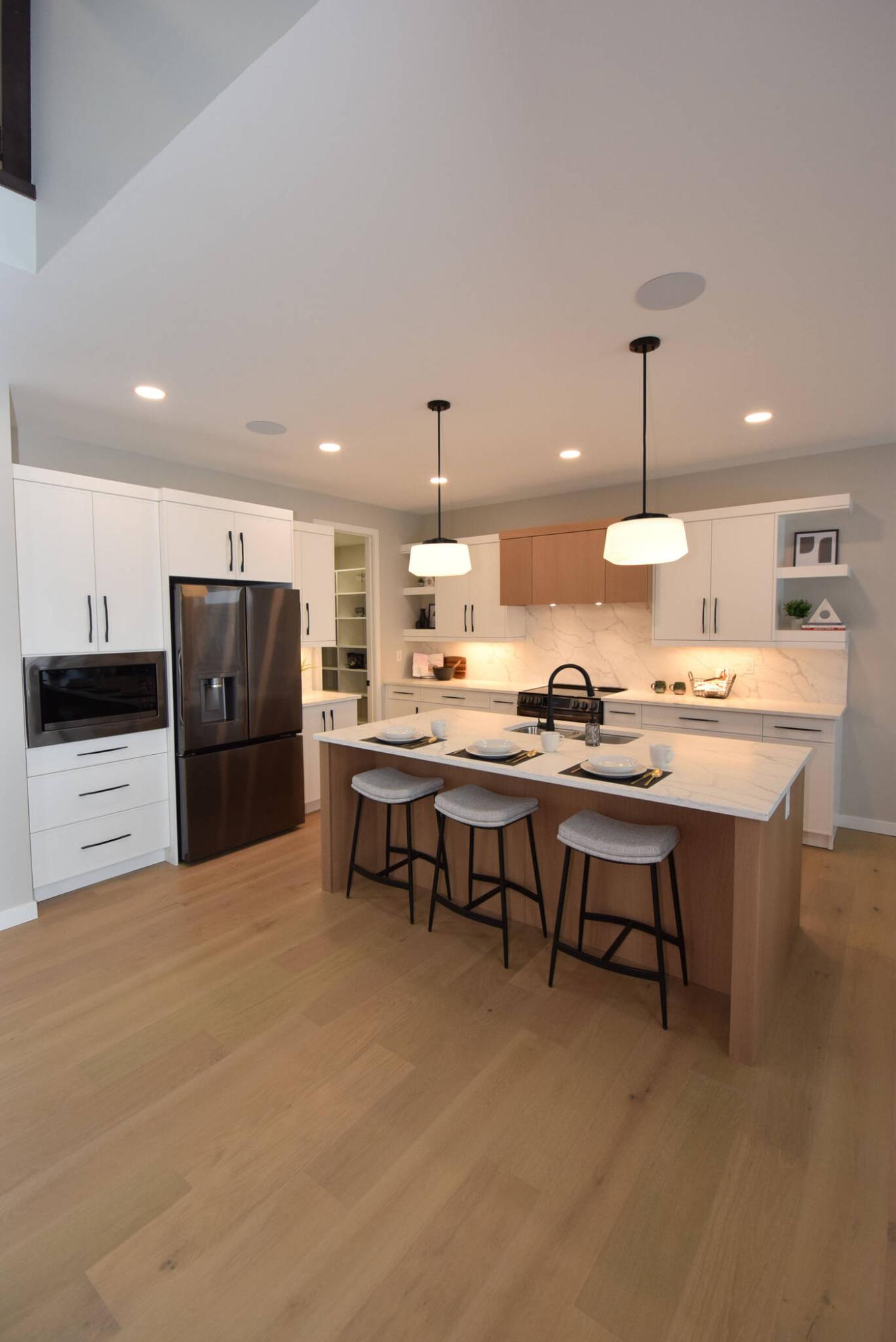 Modern yet warm, the island kitchen in Avanti Custom Homes’ two-storey Taylor Farm show home is a chef’s dream with its balance of utility and style.