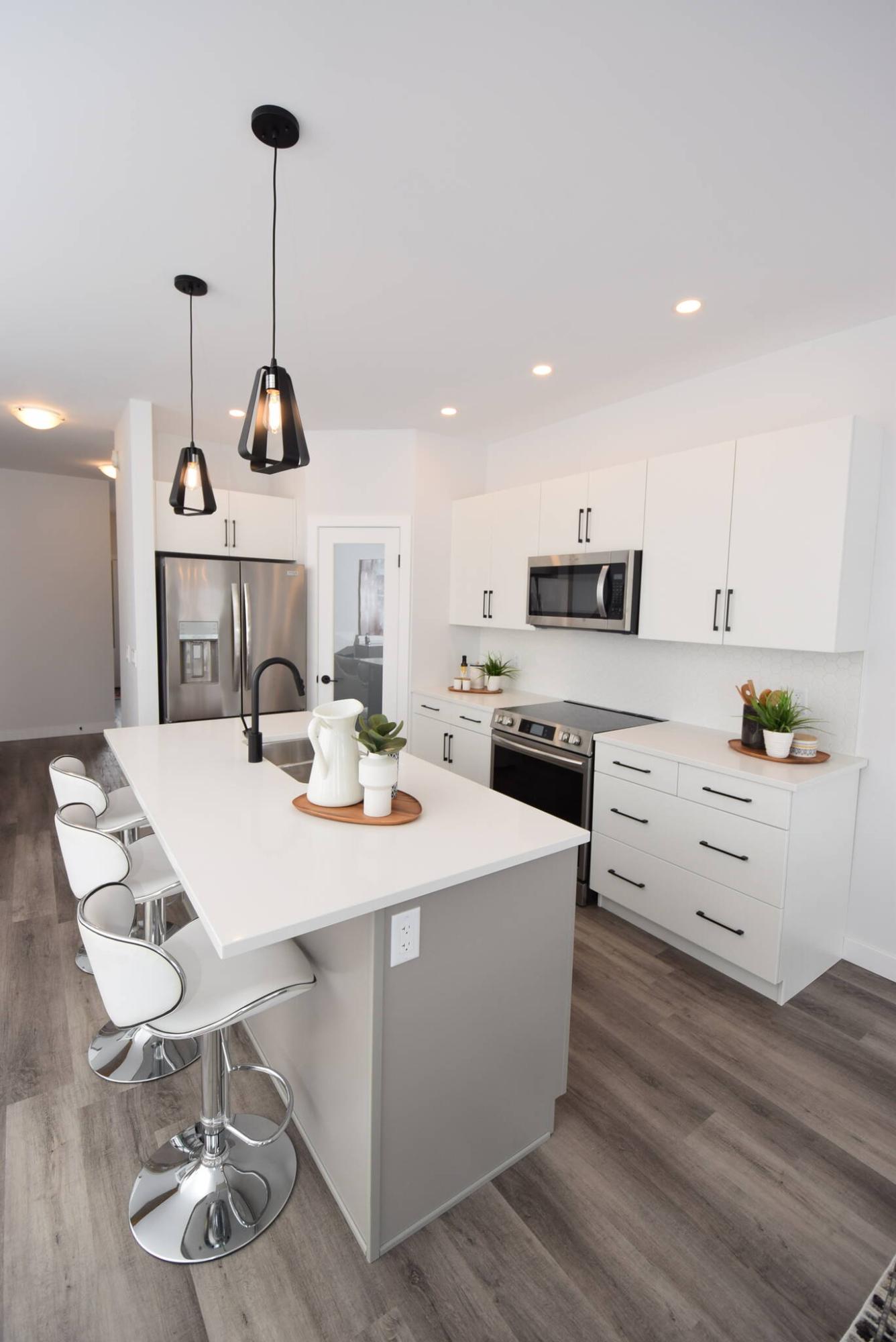 Kensington Homes has listened to consumer feedback and delivered that alternative with the Dritwood, says Allan Hayes, sales representative for Qualico’s inventive two-storey attached show home at 353 Crestmont Dr. in Bonavista.