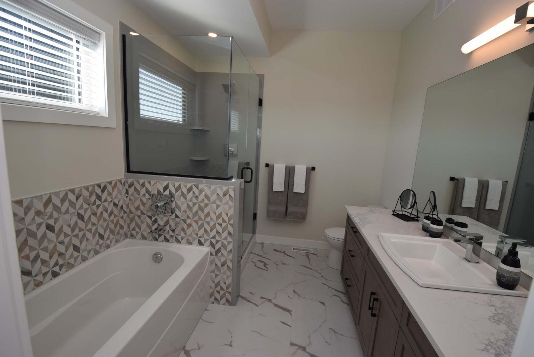 "It’s a space that’s luxurious yet functional," he says. "The bedroom is just the right size, as is the walk-in closet and the ensuite. With its soaker tub, five-foot shower, Thunder maple vanity with single raised sink and a lovely vinyl tile floor that mimics marble tile, the ensuite is a beautiful, private retreat."