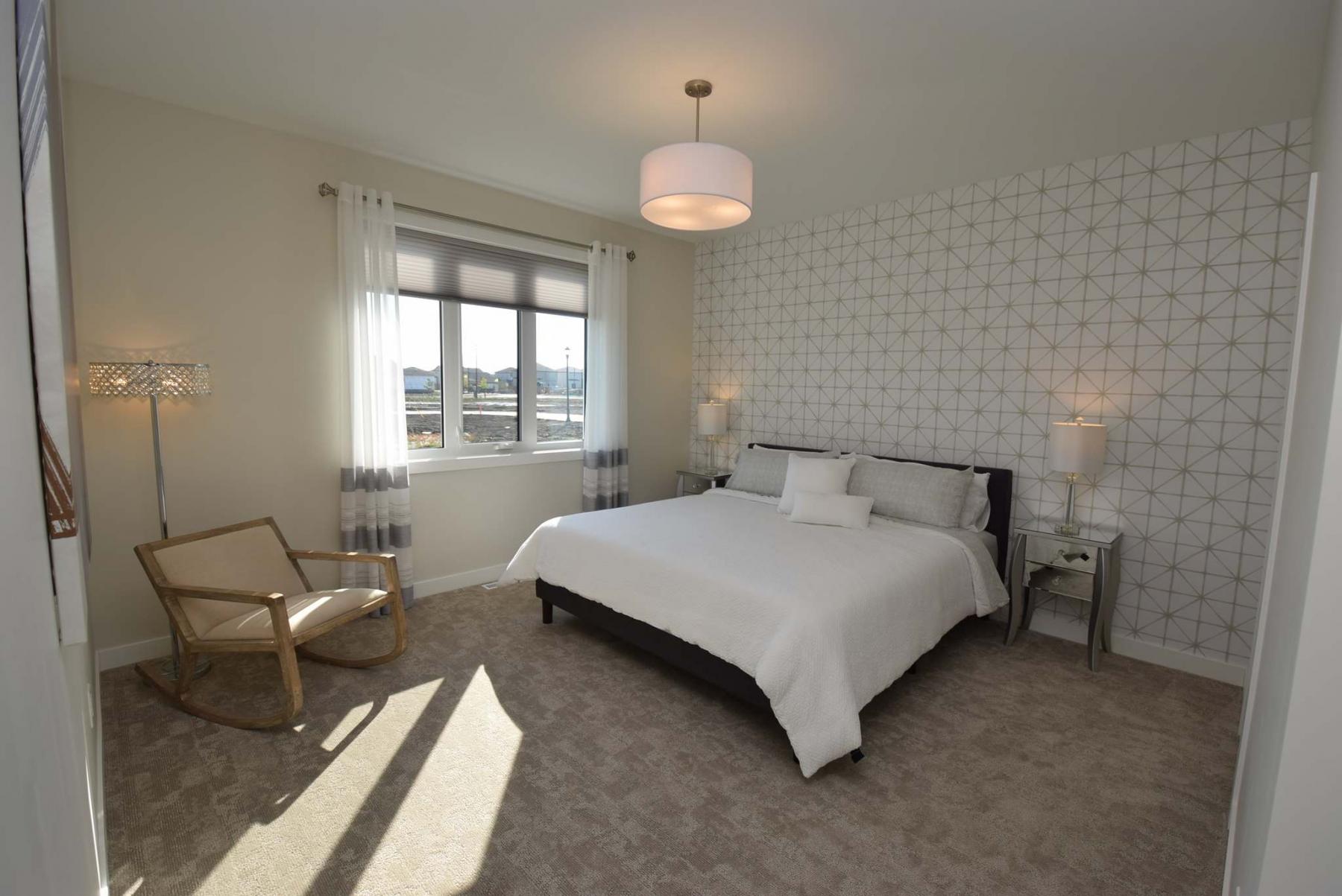 The gorgeous master bedroom is bright and open, with an attached four-piece bath.
