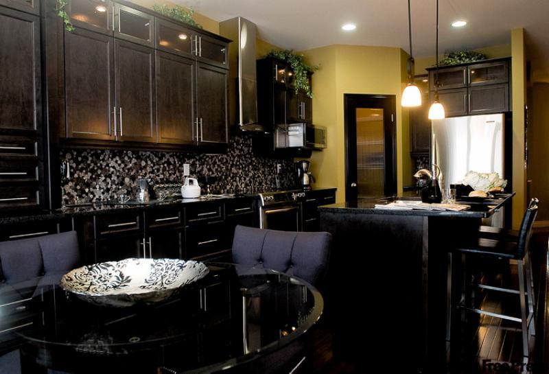 Penner adds that two other features make the home's main living area more livable. "The designers did a great job, placing big windows both in the living room and kitchen -- not to mention throughout the rest of the home," he says. "That makes for a very bright interior. The finishes are also very rich -- dark oak hardwoods, charcoal maple cabinetry (including a charcoal mantel/entertainment unit over the gas fireplace in the living room) and black granite countertops. It all works together very, very well."