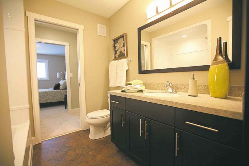 Tri-West's bi-level show home -- which sits on a 25 by 98-foot infill lot at 561 Ferry Rd. in St. James -- measures in at 958 sq. ft. on the main floor, with approximately 700 sq. ft. of livable space in its finished lower level.