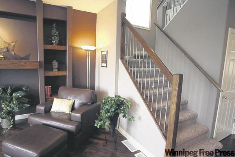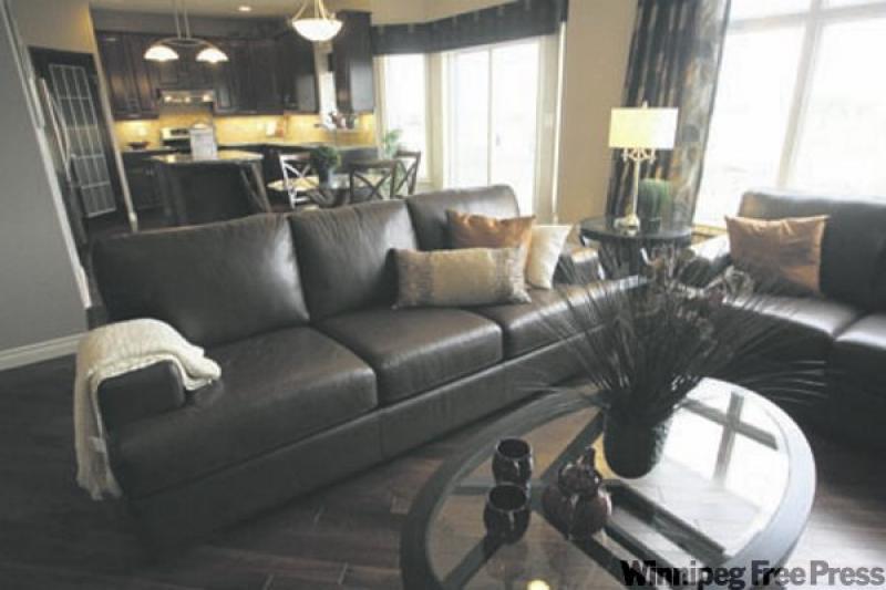 "Again, there's a sense that the area is bigger than it really is -- there are two patio doors plus a big vertical window on either side to let in all kinds of light," he says. "The island is also compact to ensure there's room to move around, and for placement of a dinette suite. Finishing touches like a beige backsplash and dark walnut hardwood floors add a rich feel to the area. The great room also has big windows, a gas fireplace and the walnut hardwoods."