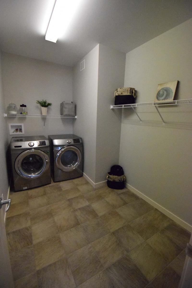 "There’s a main floor powder room and a laundry/mud room," he said. "They’re well-placed in the sense that they’re nicely hidden, not exposed. Both spaces are accessible, yet are out of the way. And the laundry/mud room is absolutely huge; people just love how big it is. There’s also a door that provides access to the attached double garage, as well."