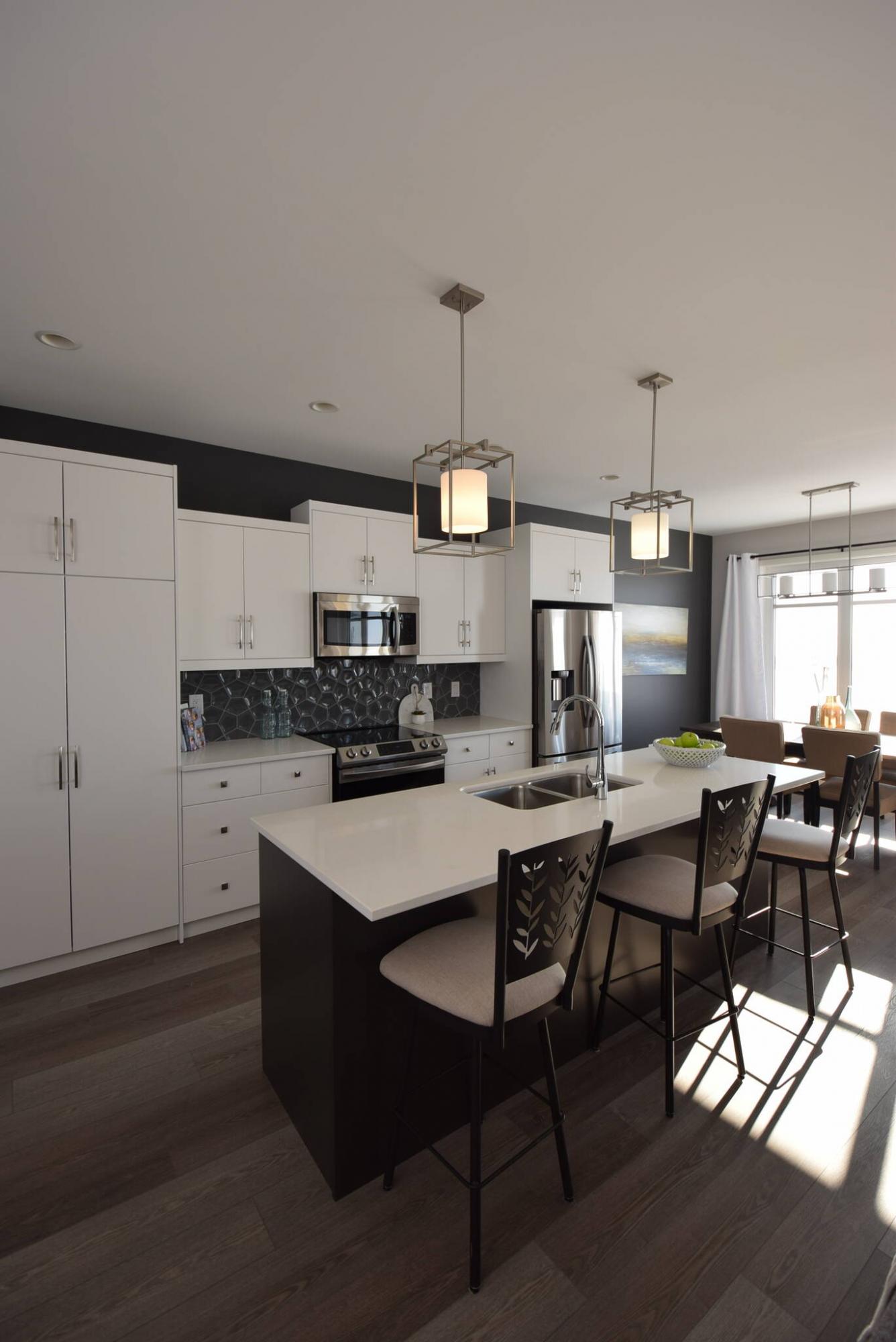 Anchored by an eight-foot island that seats three, the island kitchen in this LaSalle bi-level offers a perfect blend of space, style and function.
