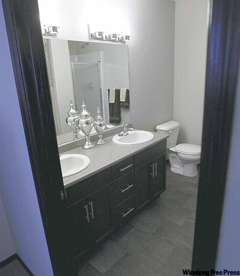 "It's a nice, roomy space with a soaker tub, four-foot shower, faux tile floor and maple vanity with dual sinks on a beautiful laminate countertop," he said. "And the walk-in closet is also huge. There's no danger of feeling boxed in here."
