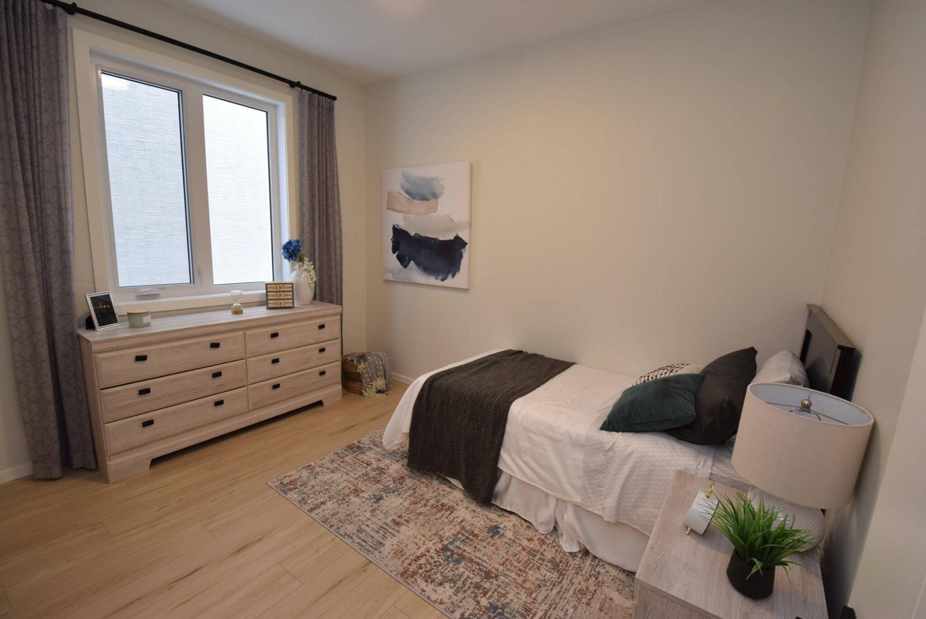 “Both kids’ bedrooms are a really good size, with one offering a walk-in closet,” says Hutchison. “The primary bedroom is all by itself on the opposite side, offering a gorgeous view down to the great room, plus a large walk-in closet and luxurious ensuite with tile floor and tiled five-foot walk-in shower.”