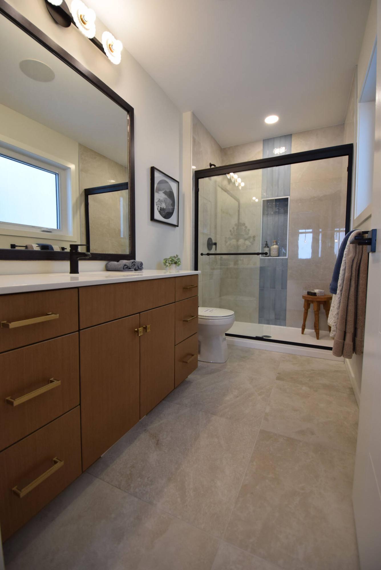 “There’s a good-sized bedroom that was placed next to a three-piece bath,” notes Hutchison. “These are spaces that families demand nowadays, as they might have an in-law come to live with them. Even better, there’s a door across from the bathroom and bedroom that hides a side door that would provide mom or dad with their own private entrance.”