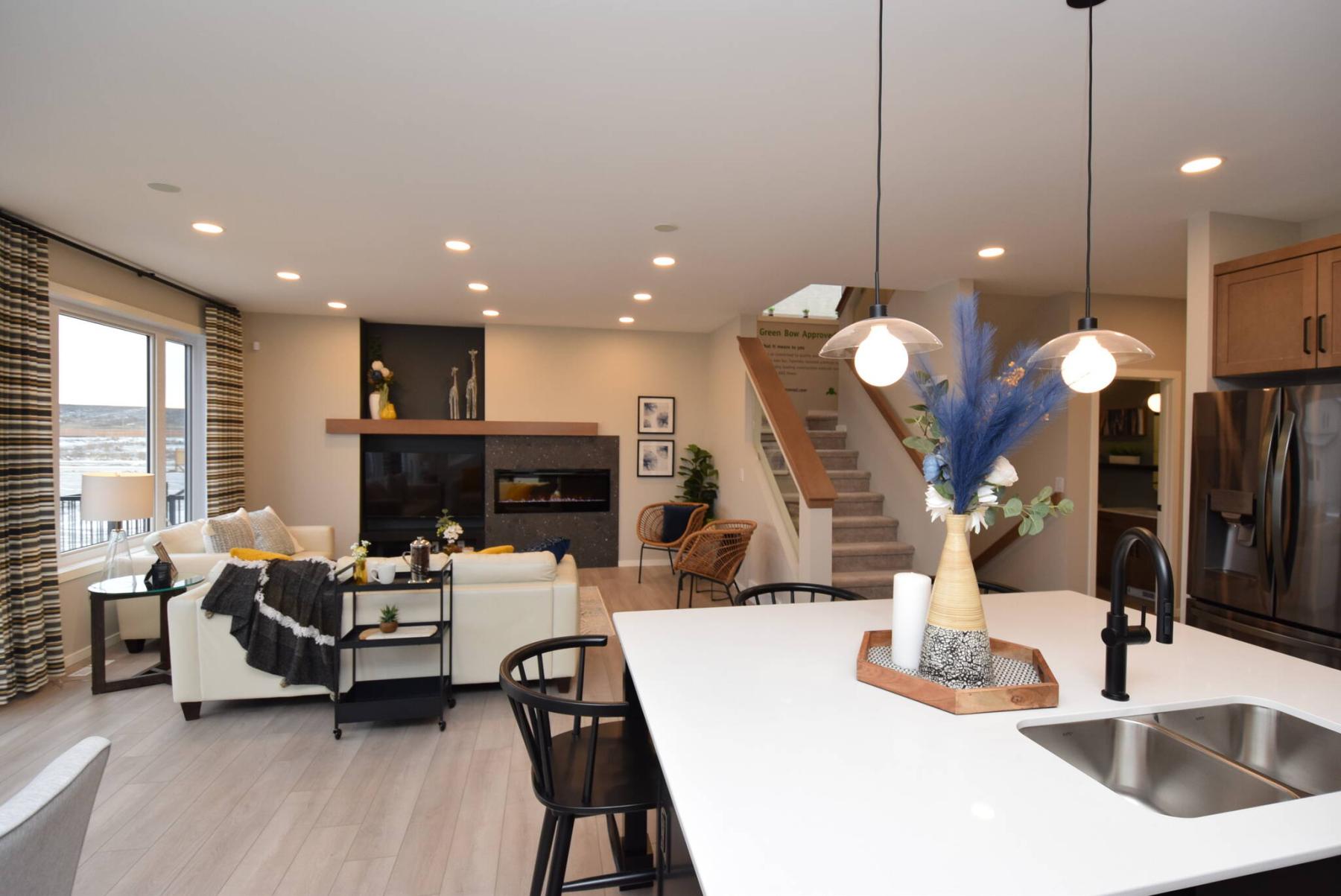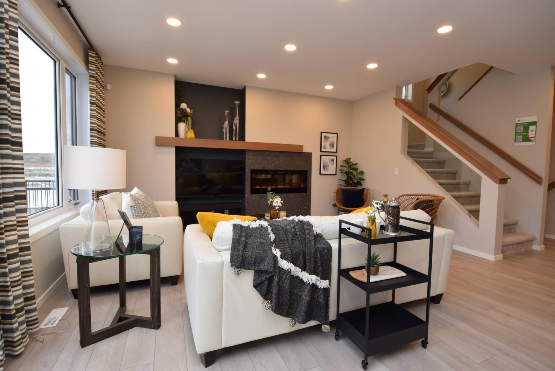 In this instance, A & S Homes built the Devanshi II — a spacious, two-storey home that checks in at 2,050 sq. ft. — on a 36-foot-wide lot at 16 Firestone Dr. in Prairie Pointe.