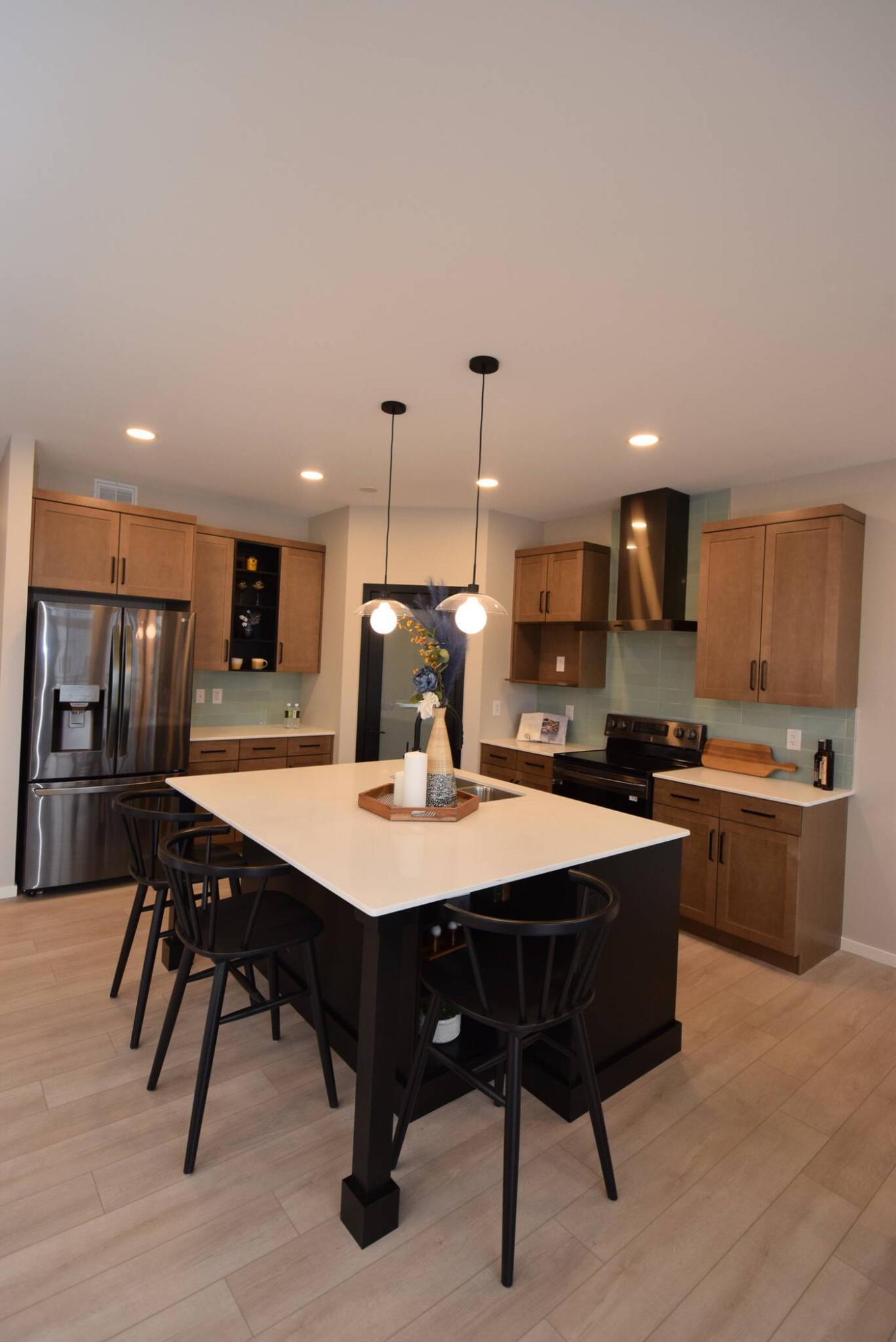 Featuring a fusion of fashion, function and flow, the kitchen is everything a chef would want, and more, in A & S Homes’ Devanshi II two-storey home at 16 Firestone Dr. in Prairie Pointe.