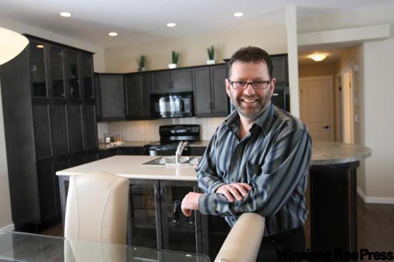 "Take the kitchen/great room area," he says. "It's open-concept and has big windows at either end to make for a bright space that flows extremely well. To complement that, it has dark maple hardwoods, maple cabinets with charcoal stain, an eight-foot island with eating nook for two, pull-out drawers, a beautiful beige backsplash and under-cabinet lighting -- all features found in upper-end homes."