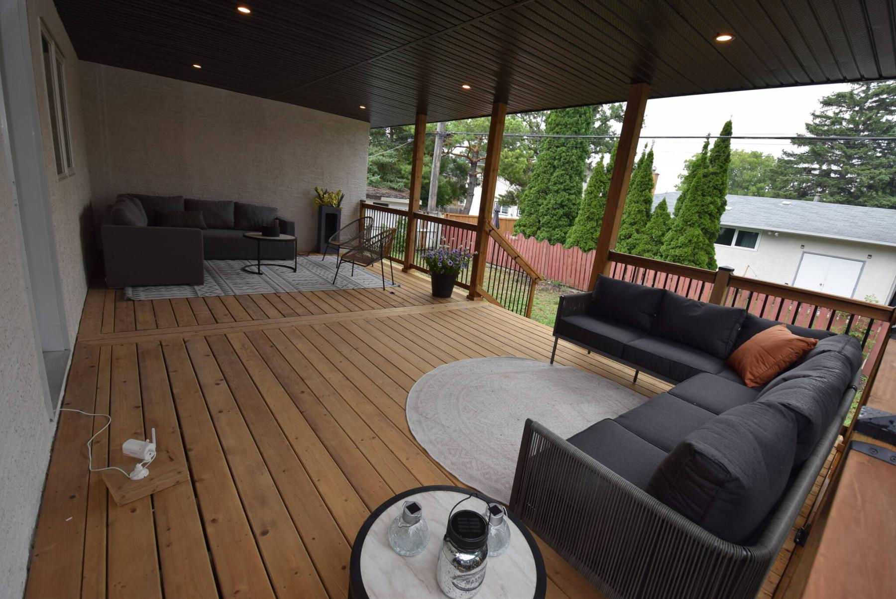 The huge covered backyard deck is perfect for entertaining or relaxing with a book or your favourite beverage.