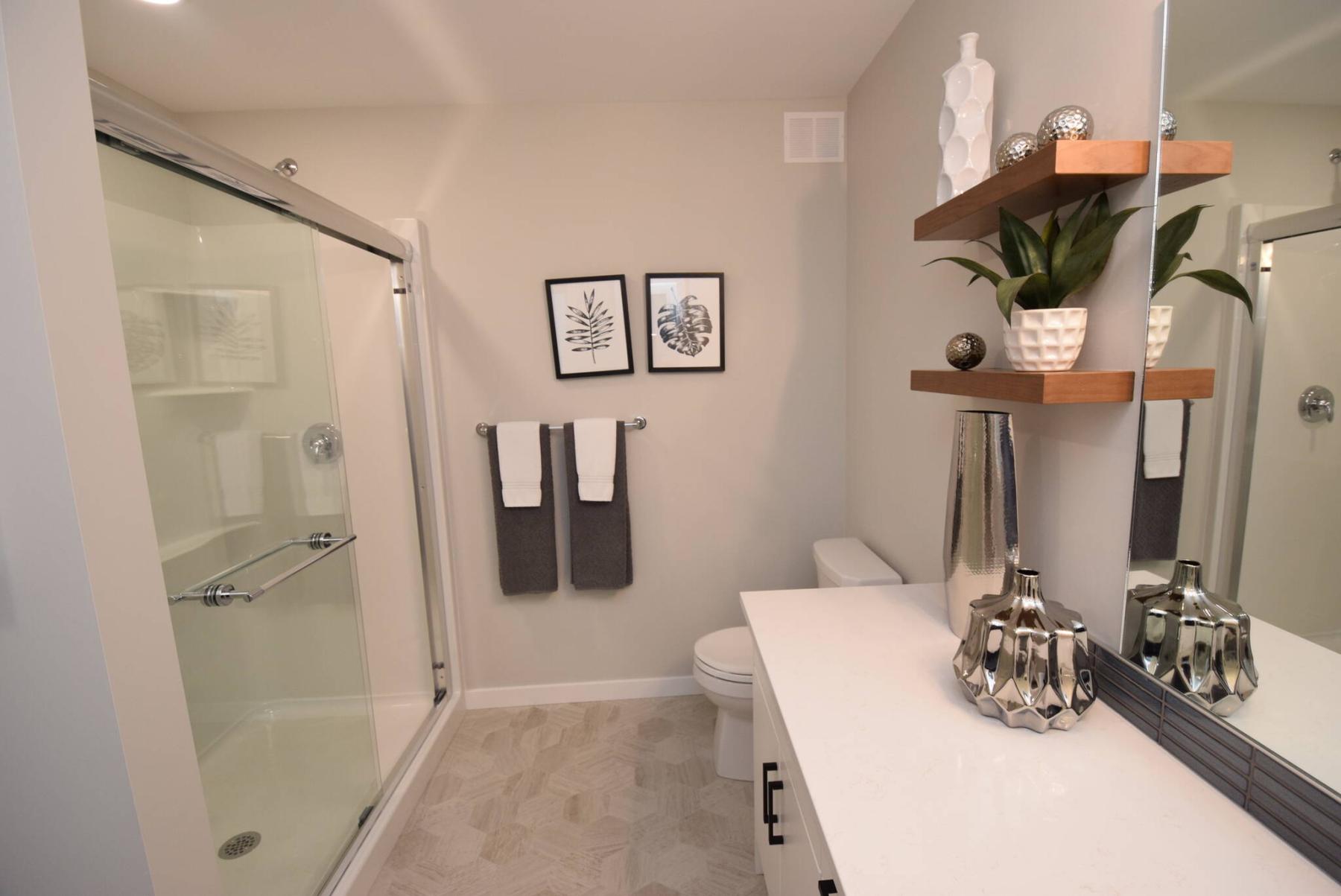 “No matter which direction you look — just like on the main floor — there’s so much natural light that comes in from all the oversized windows,” she says. “And every space — the main bathroom, secondary bedrooms, primary bedroom and laundry room — is a really good size. I really like that the laundry room has a huge window and a shelf for extra storage.”