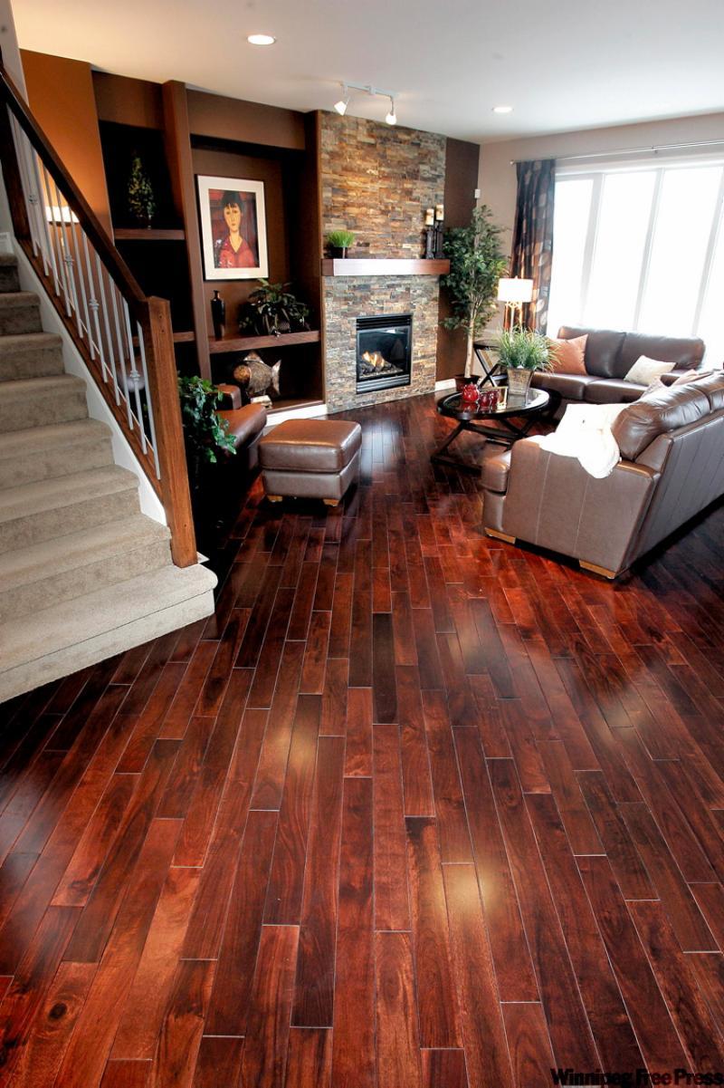 Additional features include plenty of room for a circular, four-person dinette between the living room and raised island with eating nook for two to three. All the medium-hued earth-tone colours work well together.